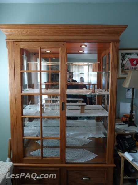 CURIO DE MARQUE «BUHLER» MODEL # 259 EN CHÊNE À L`ÉTAT NEUF (avec éclairage intégré) DIM : i)hauteur: 78po ii)Larg. : (48±po)47Po iii)prof. : 16 po. DEMANDE :1300.00$ (NÉGOCIABLE)PRIX RÉVISÉ (l’acquéreur verra à effectuer le déménagement) CONTACTER LUCIENNE (450) 467-4464